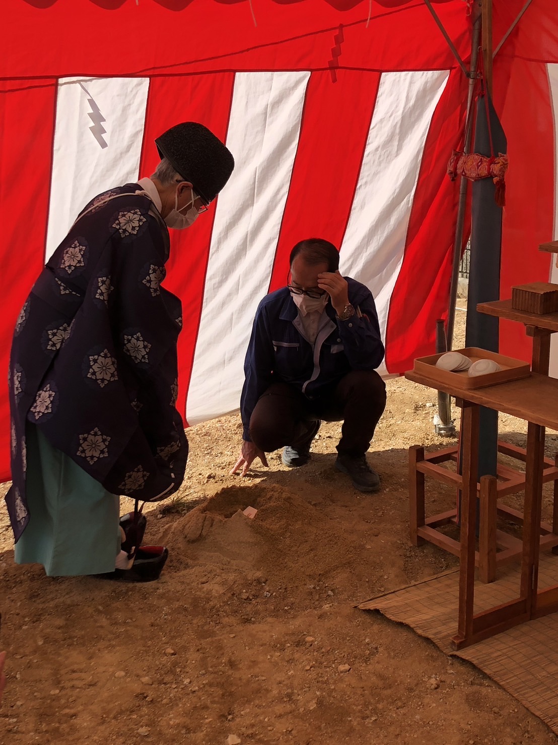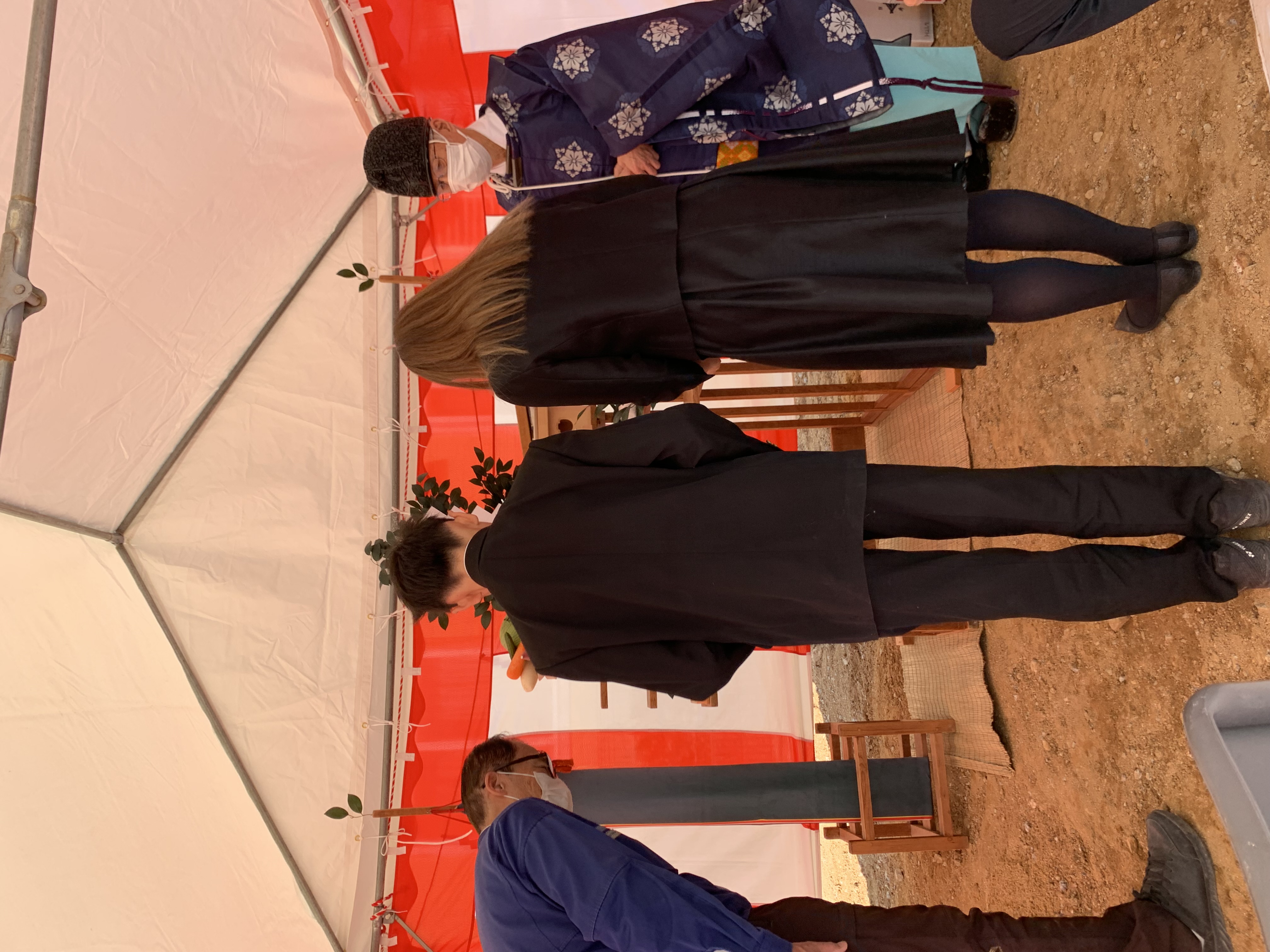 皆んな笑顔で、滞りなく地鎮祭を終えました。