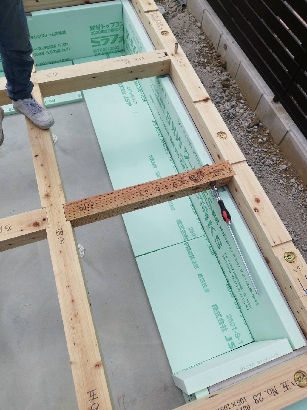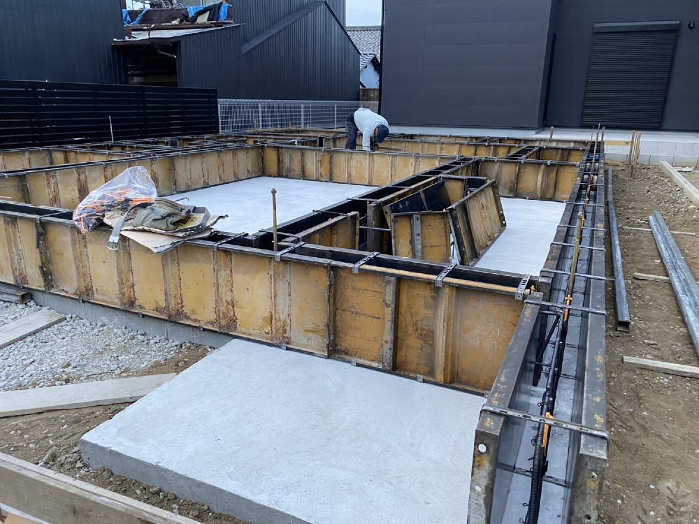 続いて、外周部、土間型枠も組んでいきます♪よろしくお願い致します🙇