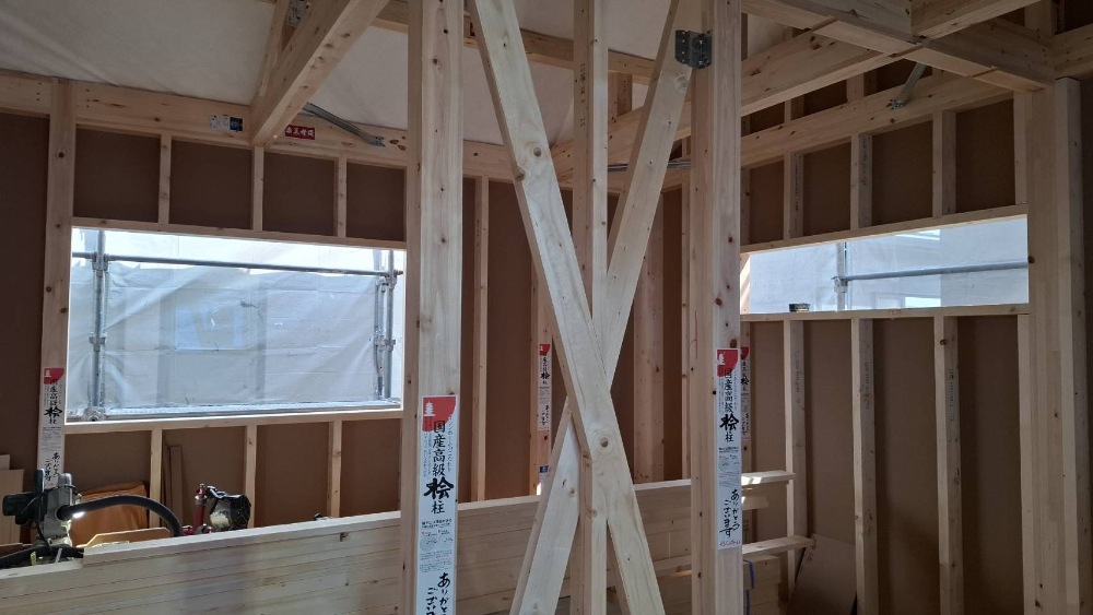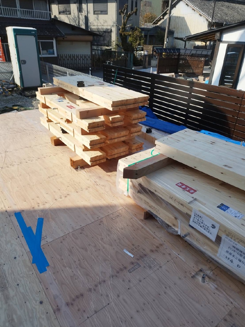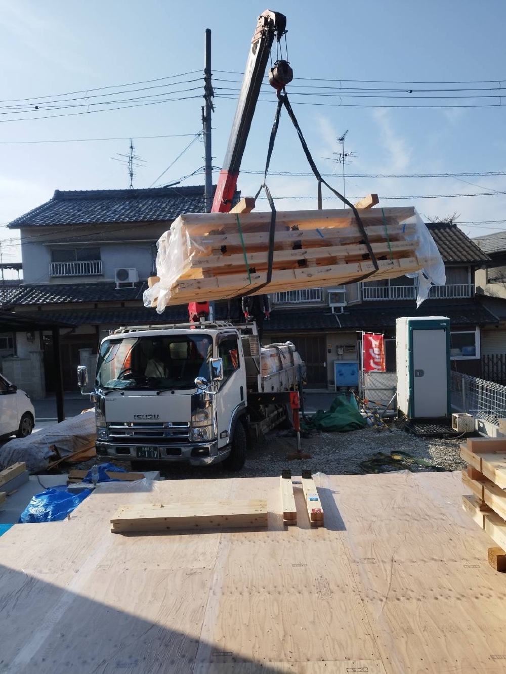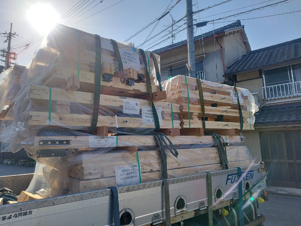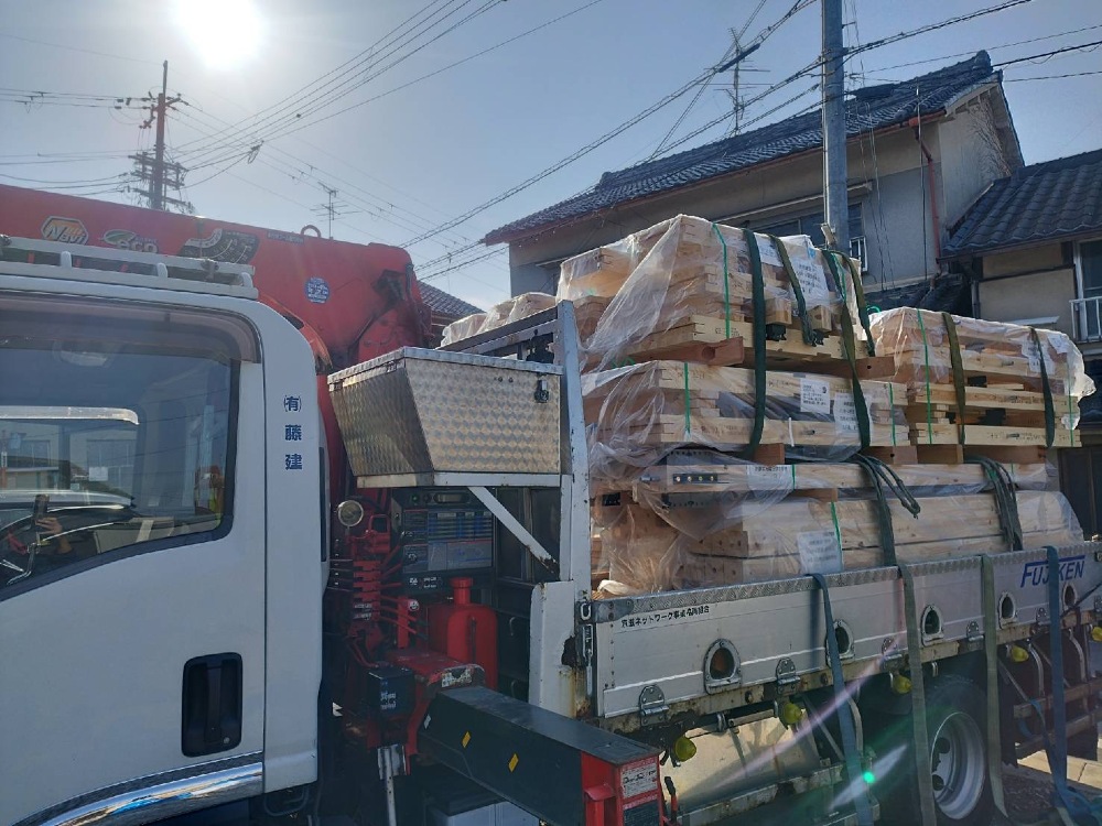 上棟に向けて、1階の、柱、梁を搬入させて頂きました🩷