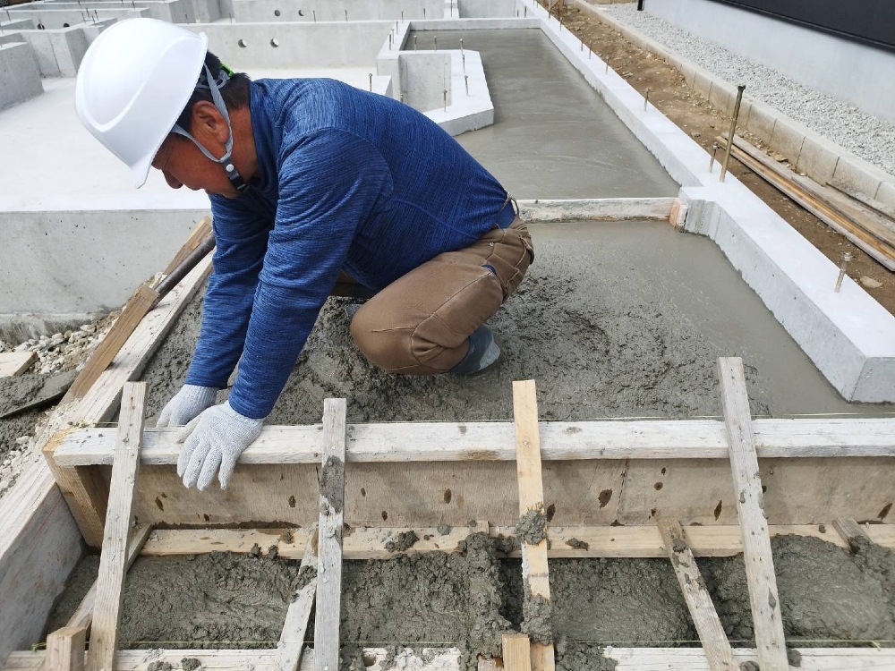 コンクリート打設工事👷♀️が終わりましたので、コテで仕上げます。