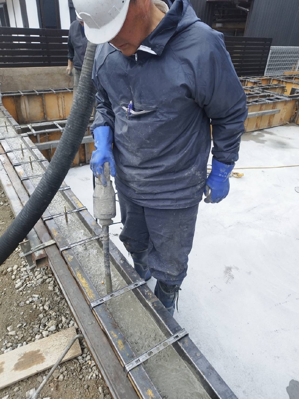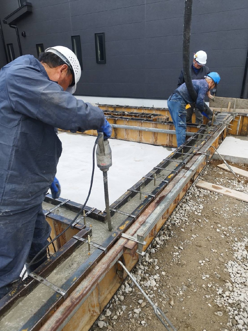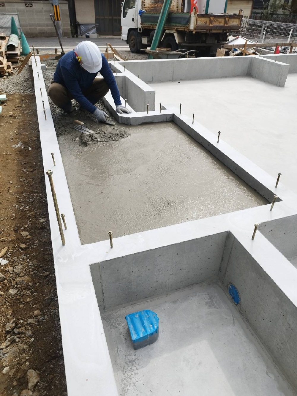 先程、コンクリートを流し終わり