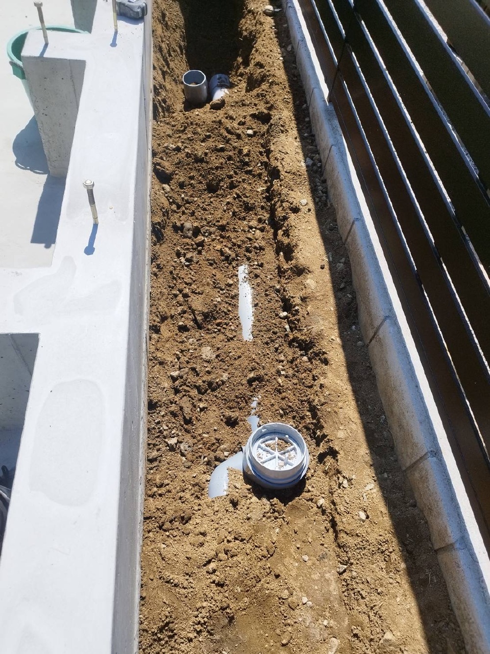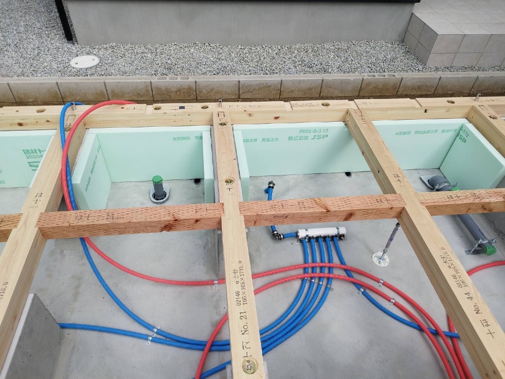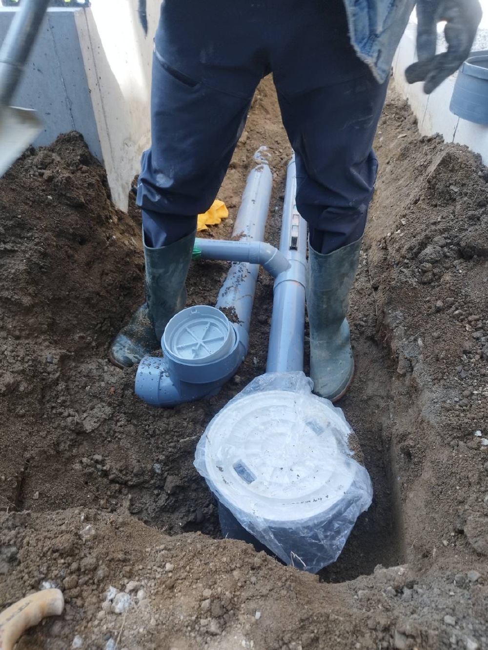 外部の給排水管の接続を行なっています♪
