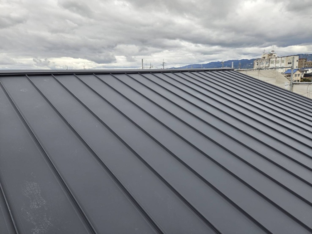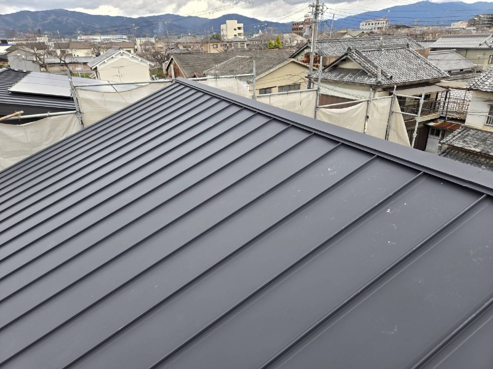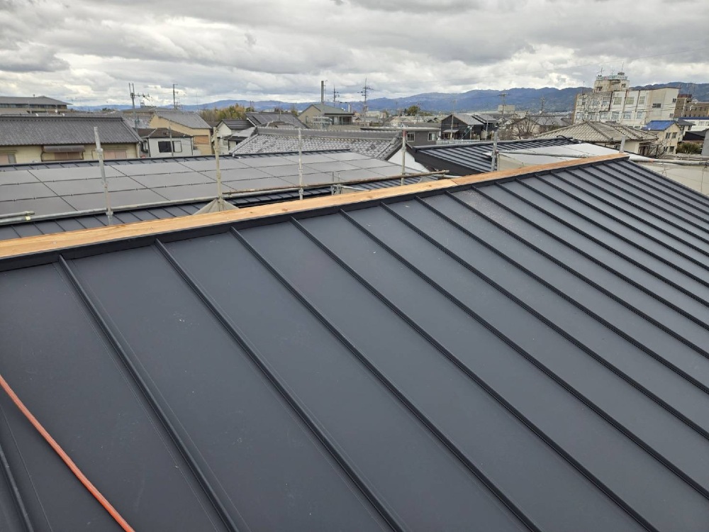 屋根のルーフィングのあと、ガラバリウム鋼板を張って参ります。