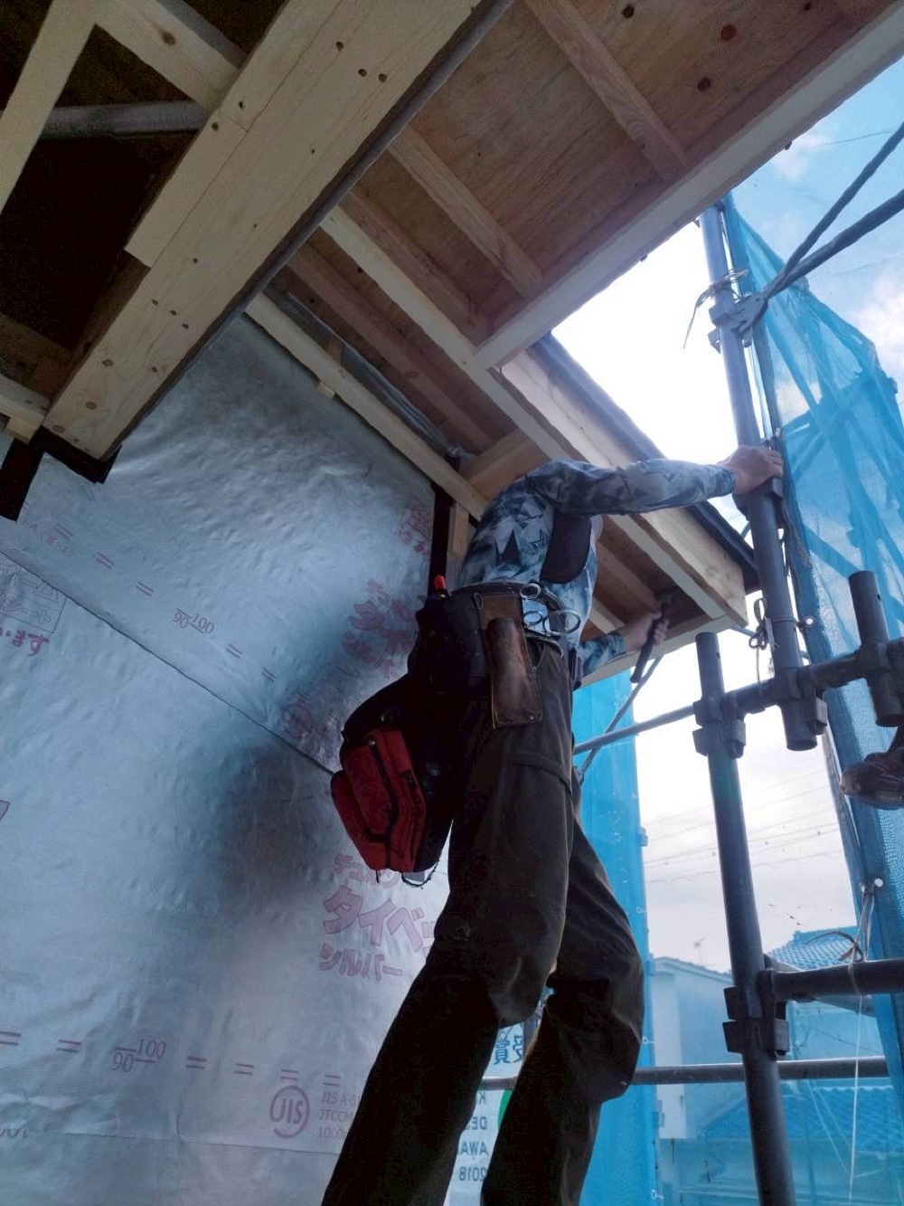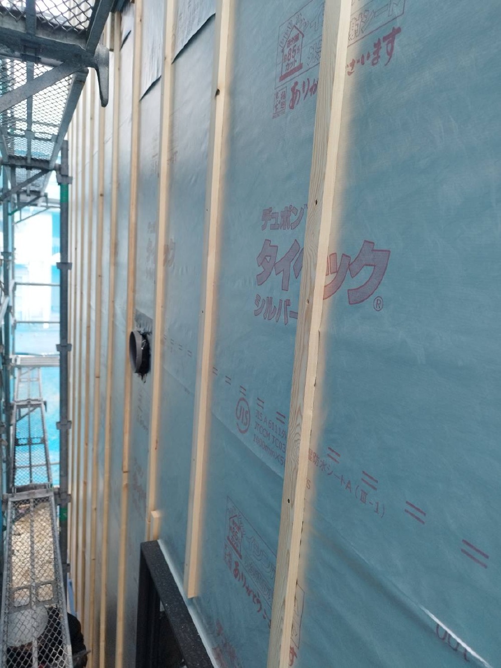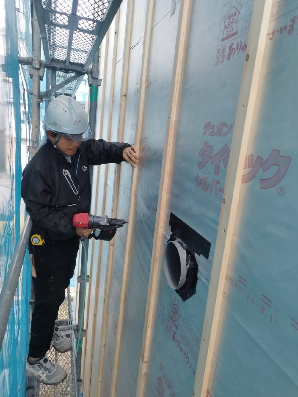 この木材の上にサイディングを張っていきますが、現在では、金具留めが主流ですので、釘うちからの浸水の心配は,ほとんどないです♪