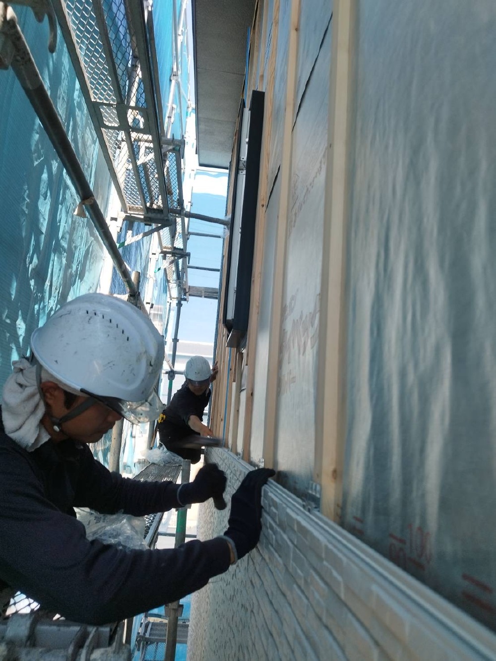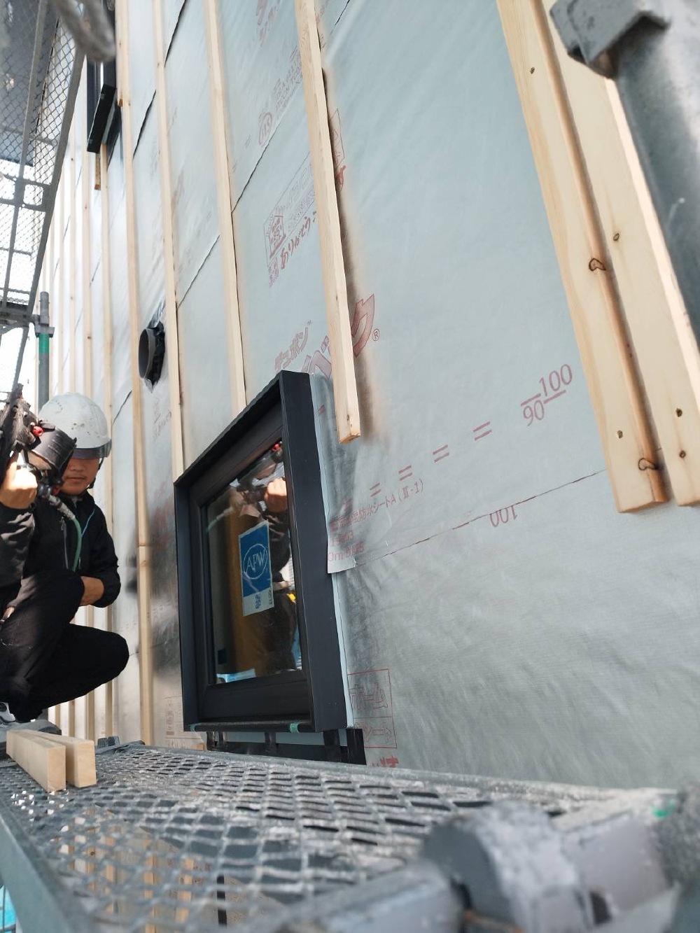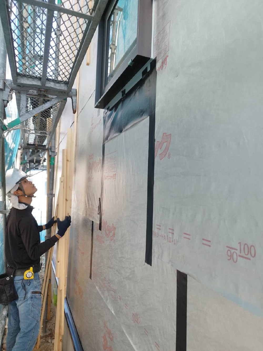 この木材の上にサイディングを張っていきますが、現在では、金具留めが主流ですので、釘うちからの浸水の心配は,ほとんどないです♪