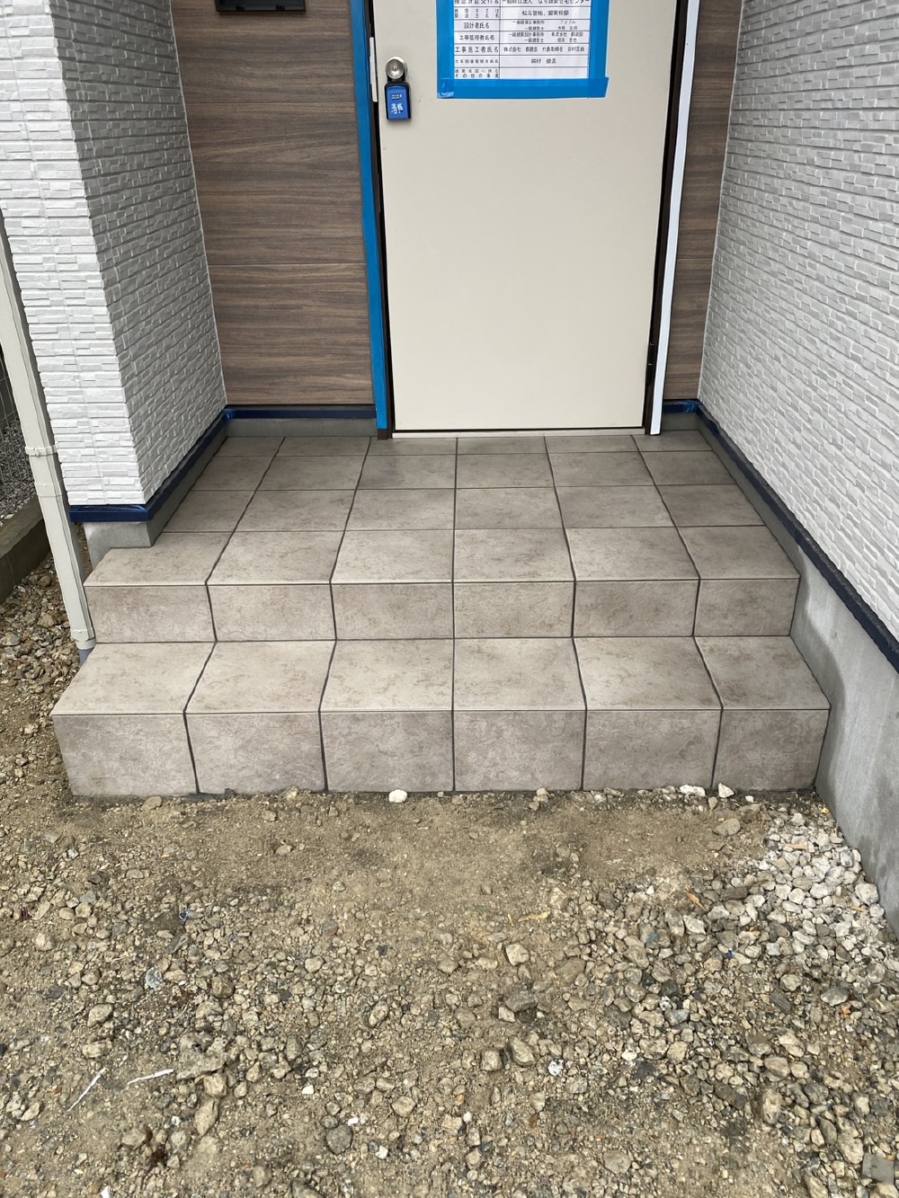 玄関内と、玄関先のタイル工事が終わりました♪