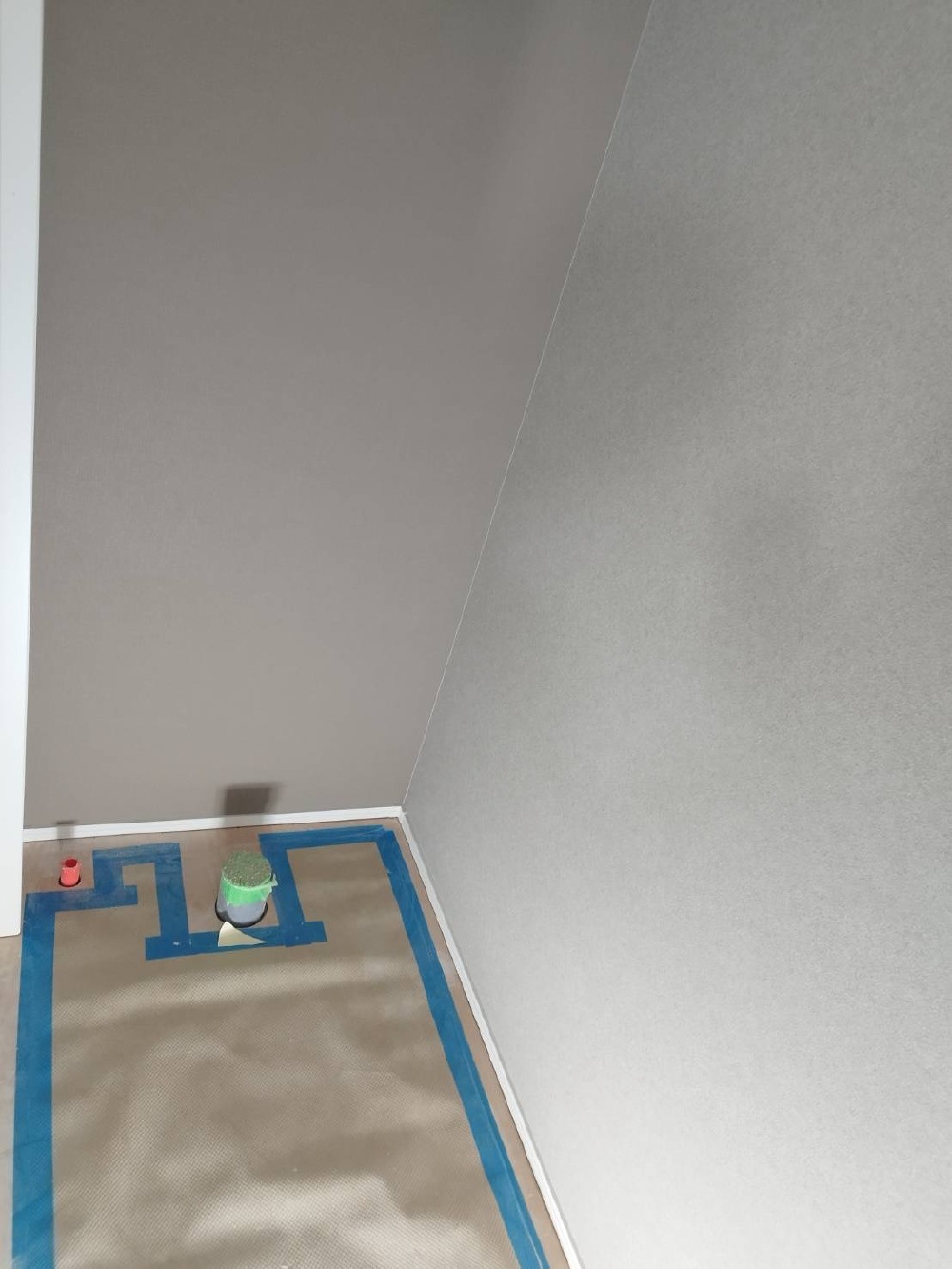 レベラーを流しましたので、養生マットをかけます⁉️