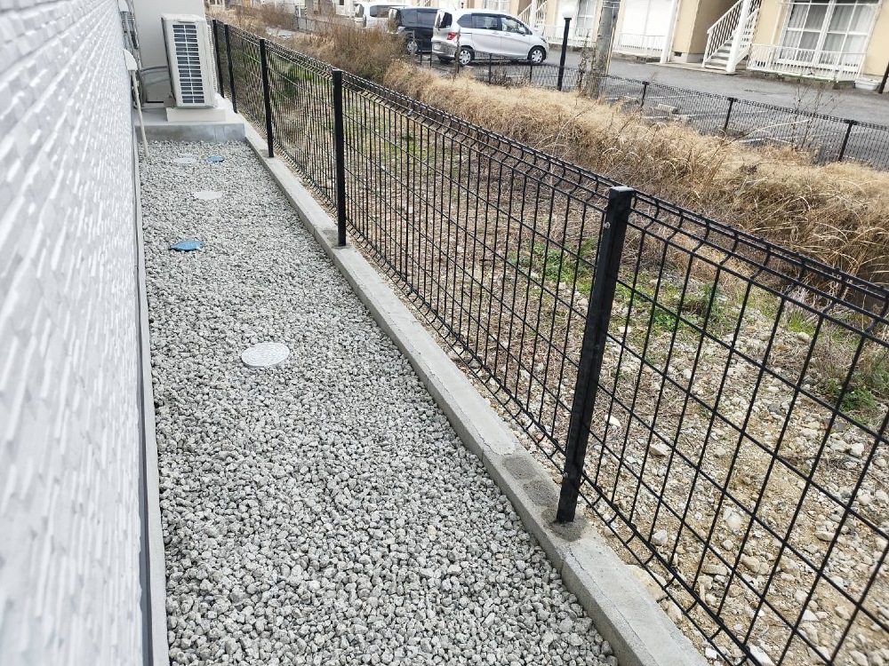 周りのフェンスも、砂利敷も出来てます♪