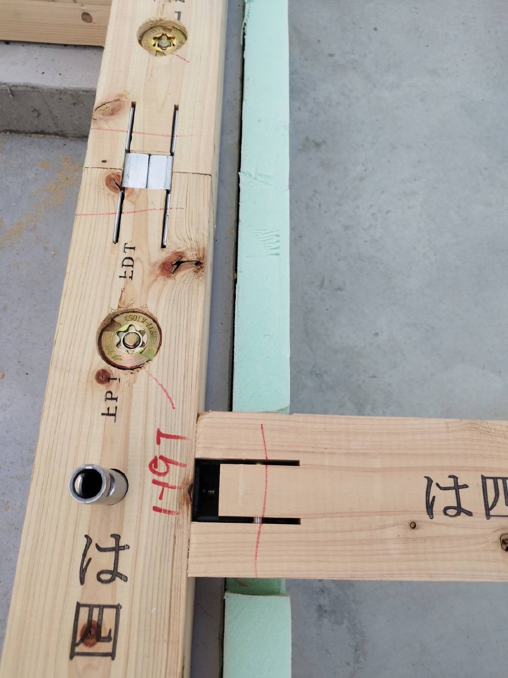 基礎と、土台の間には、減震金物が設置されてます♪大きな地震による被害を最小限に抑えてくれます♪