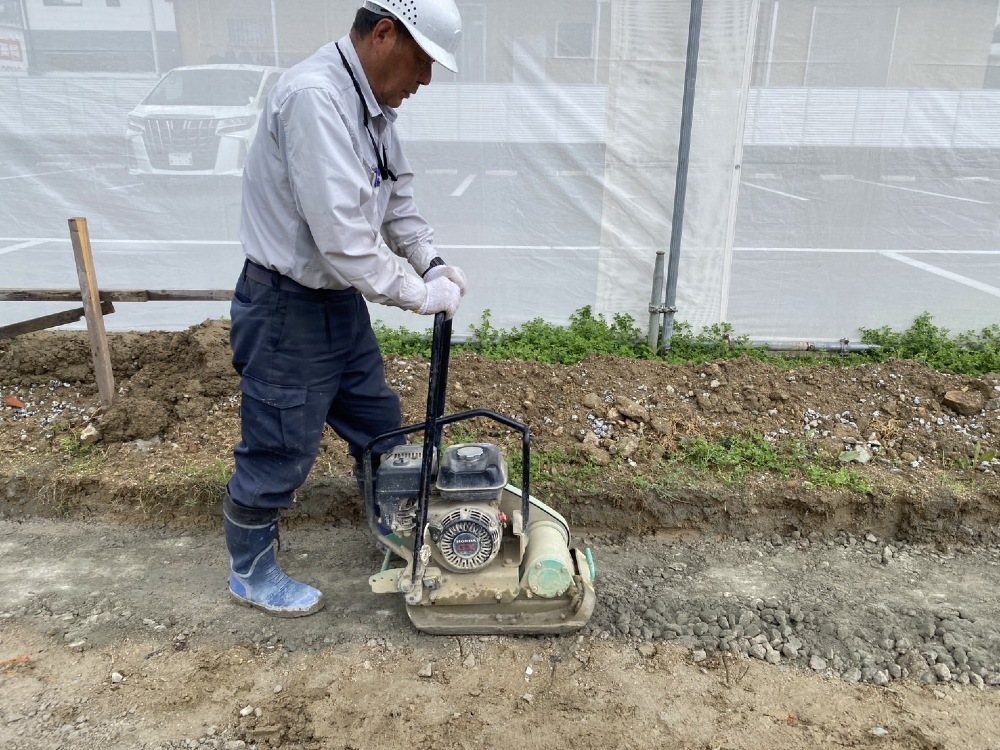 外周部から、しっかりと転圧していきます