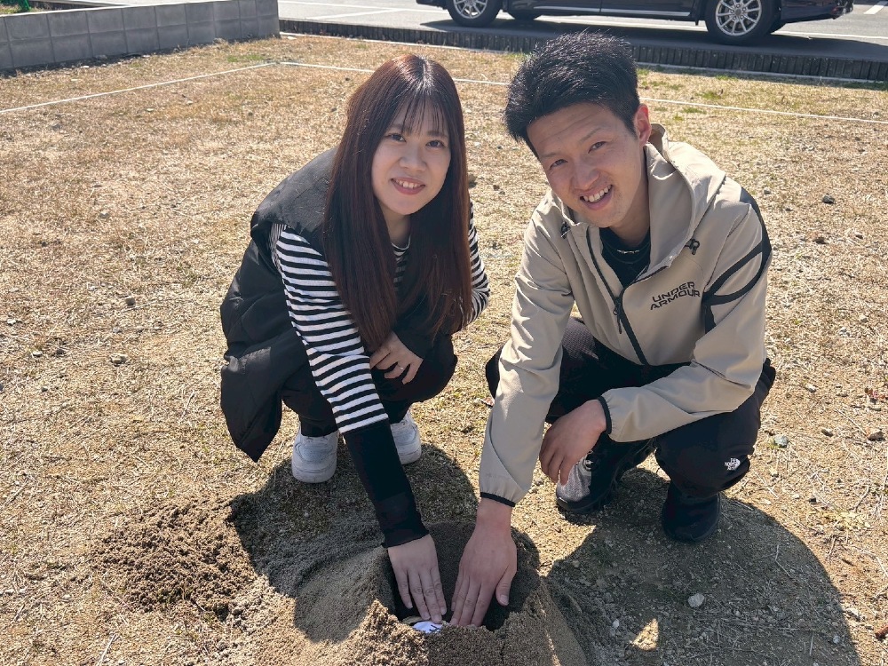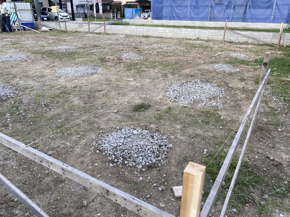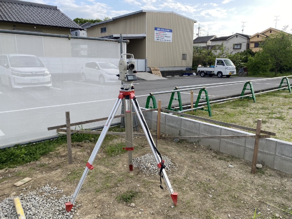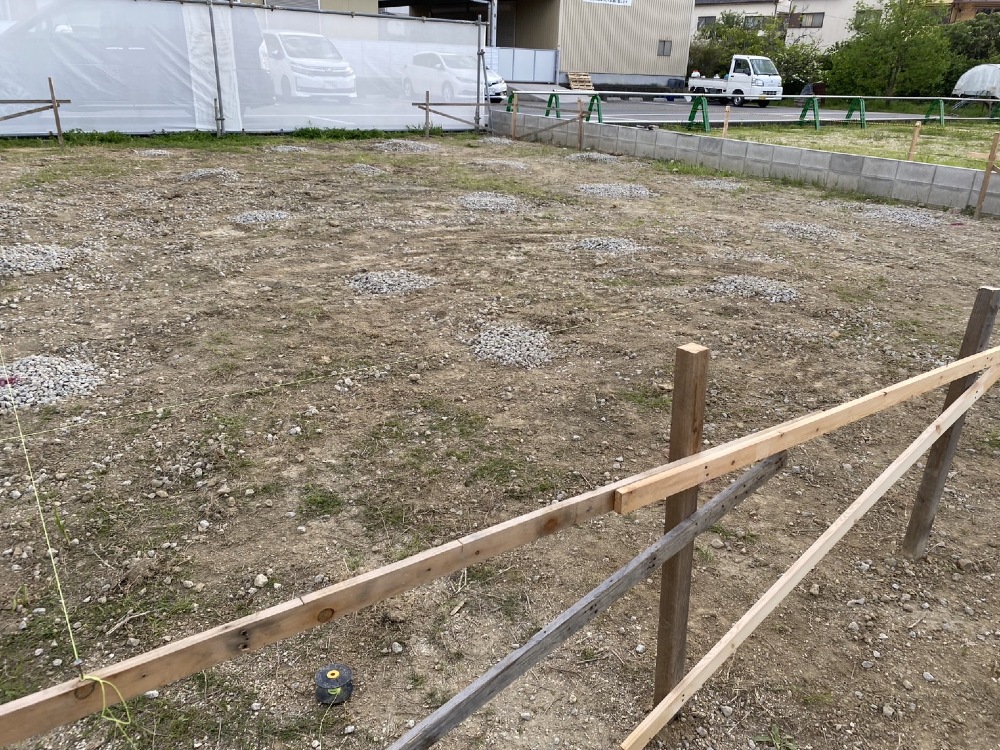 昨日より、芳井組さんが工事に入られました🩷まずは、建物の位置を確認致します。宜しくお願い致します🙇
