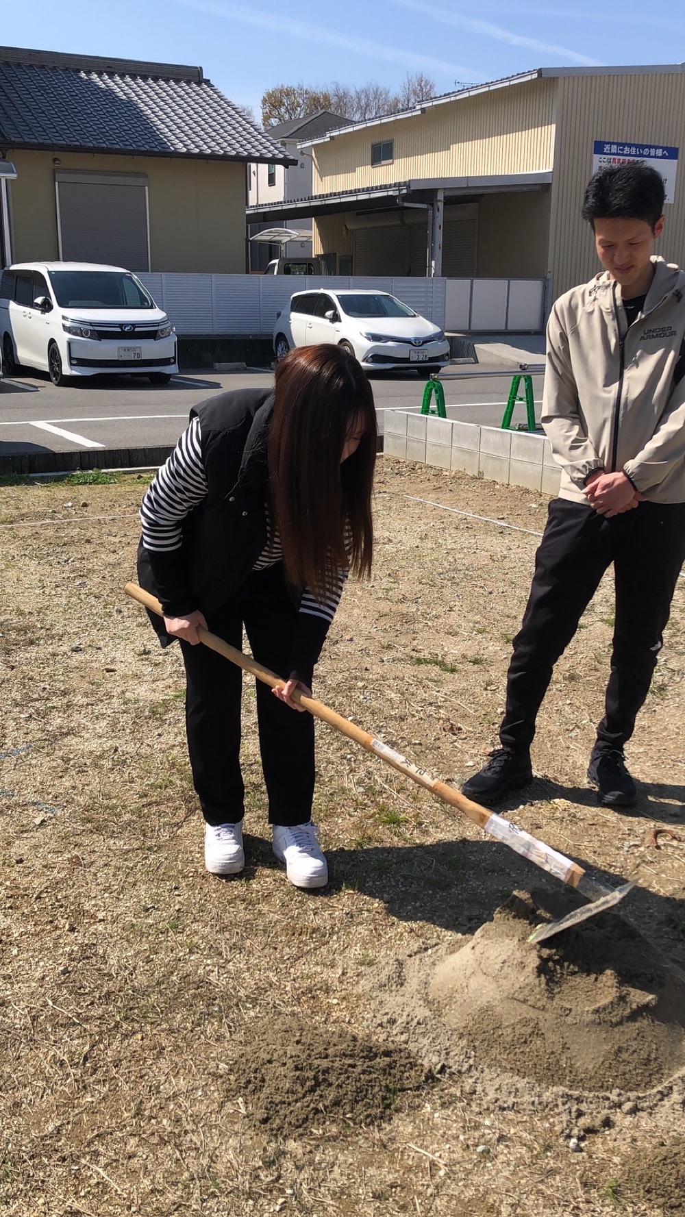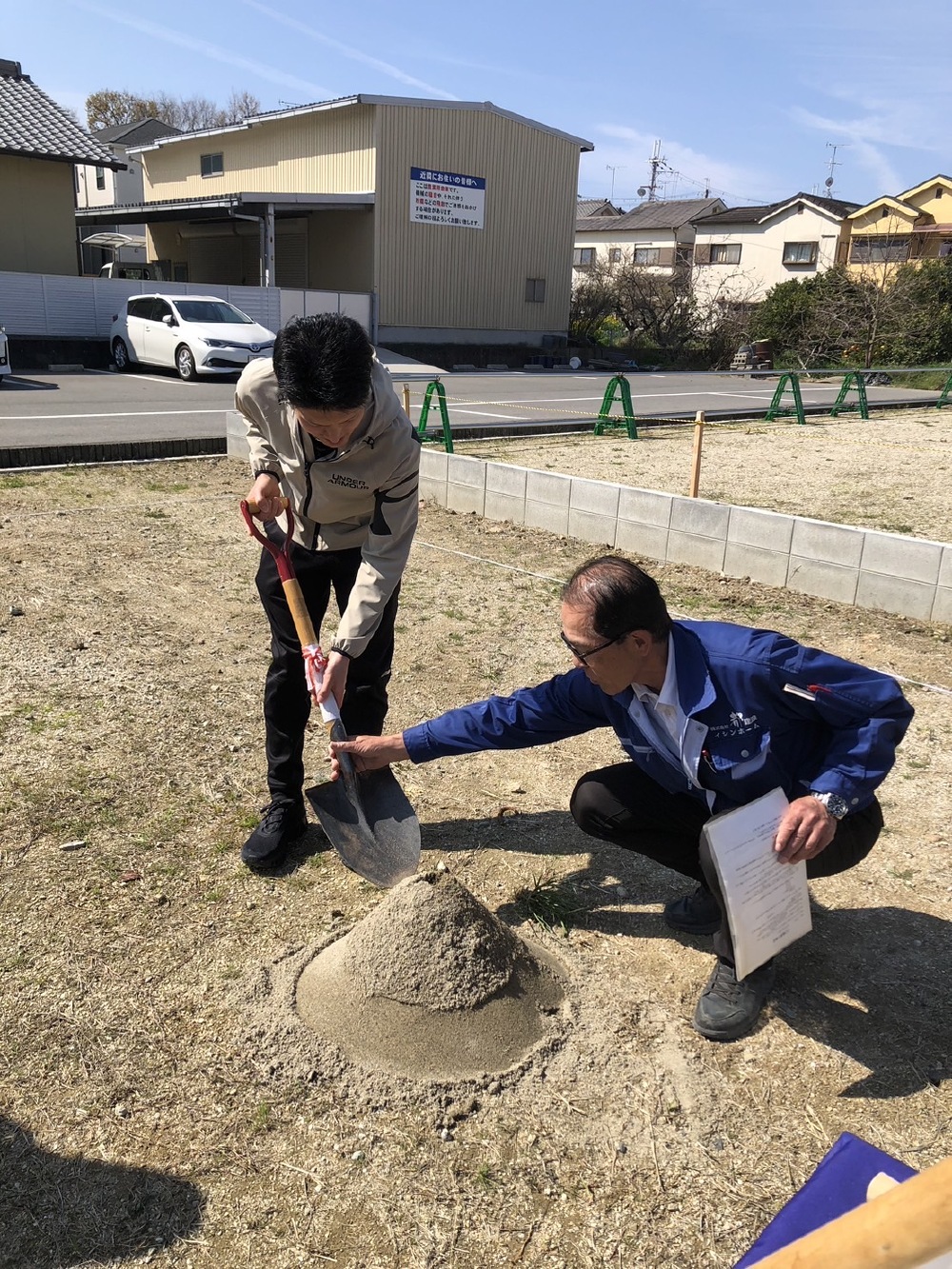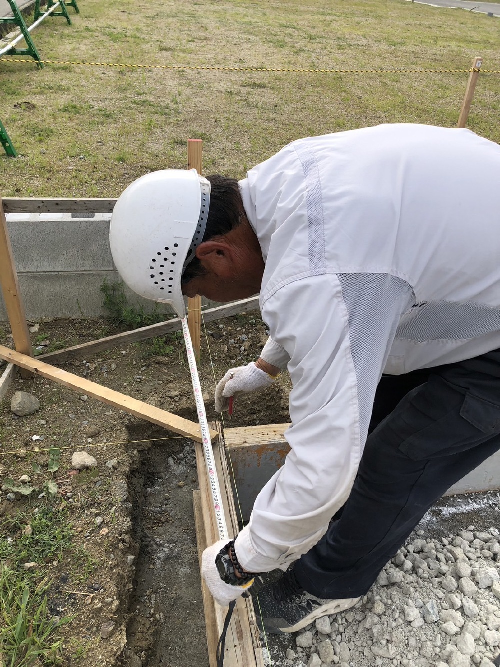 昨日より、芳井組さんが工事に入られました🩷まずは、建物の位置を確認致します。宜しくお願い致します🙇