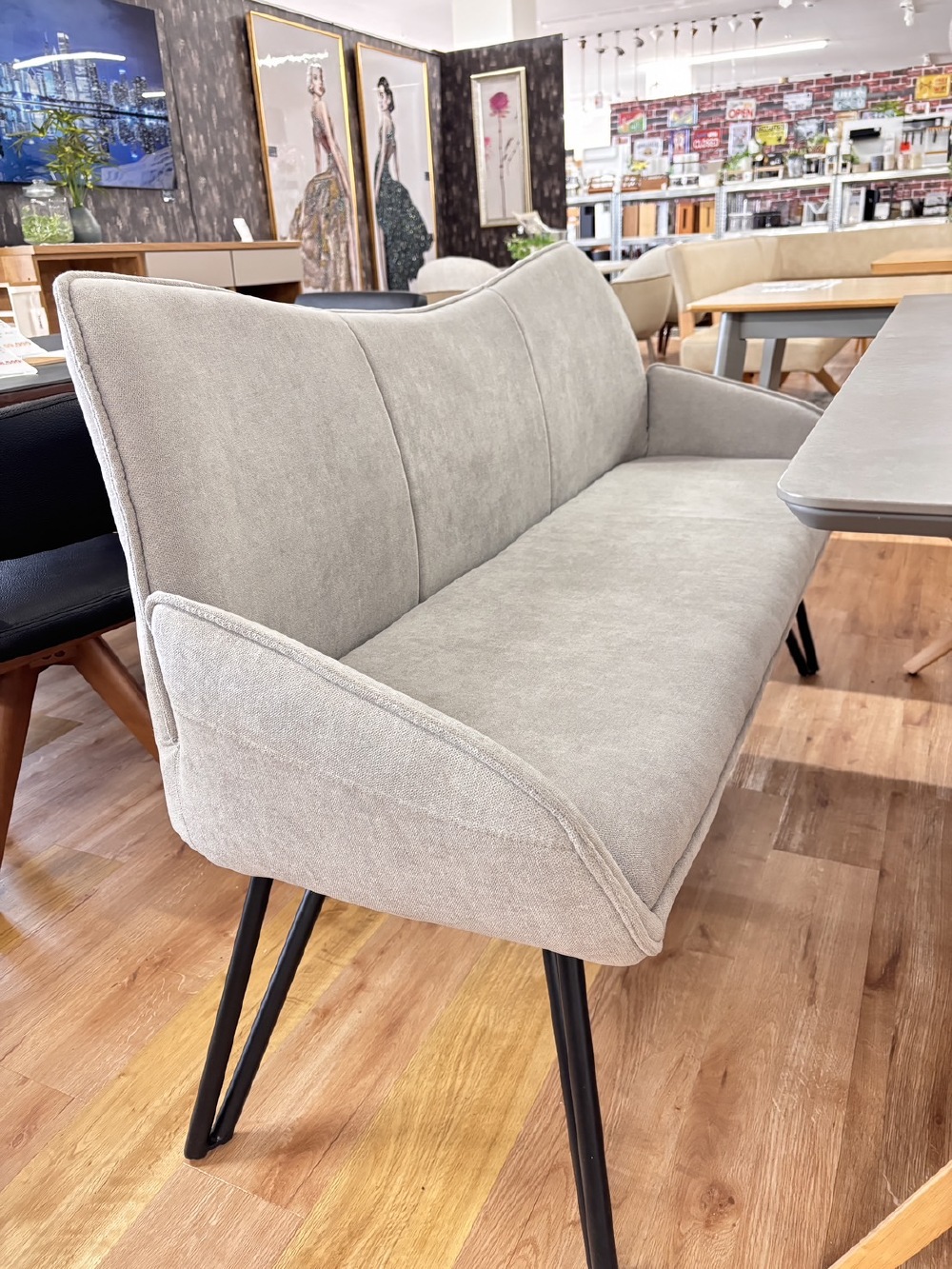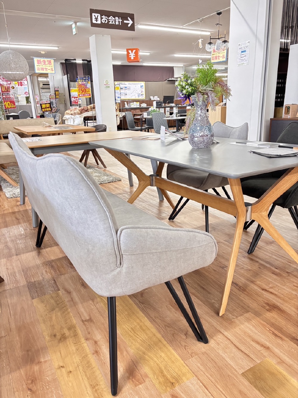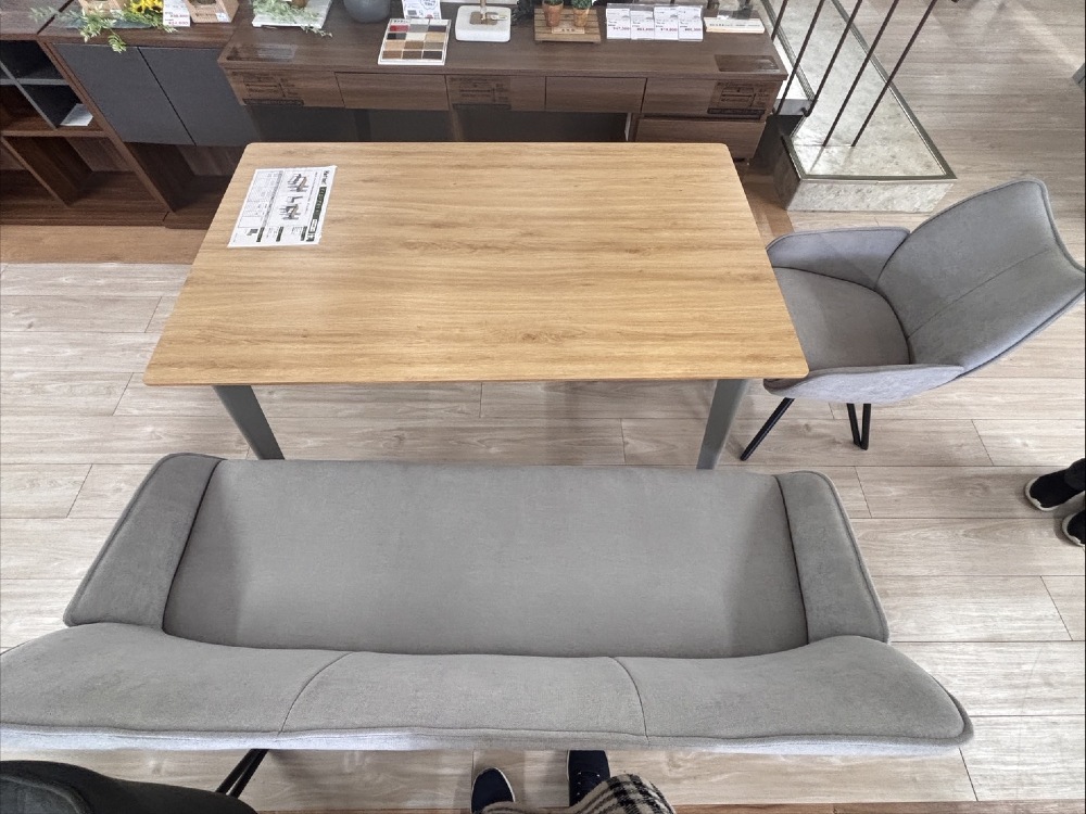 今日は、モデルハウスに使いますダイニングテーブルと、椅子と、ソファを見てきました。