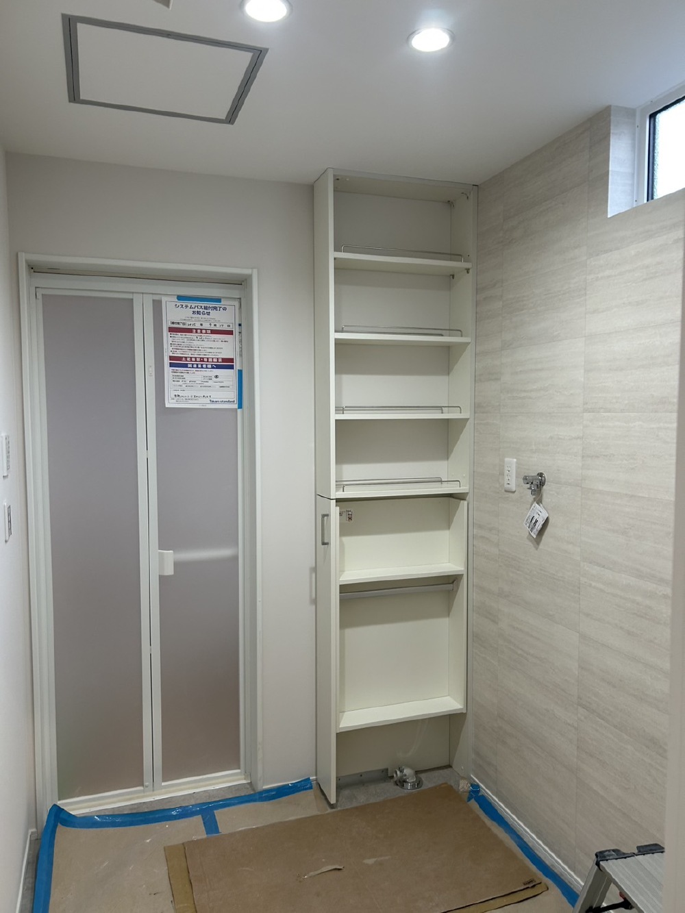 天理前栽モデルもクロス工事が終わり、佐藤大工さんは、玄関等の棚造りをされました🩷🩷🩷